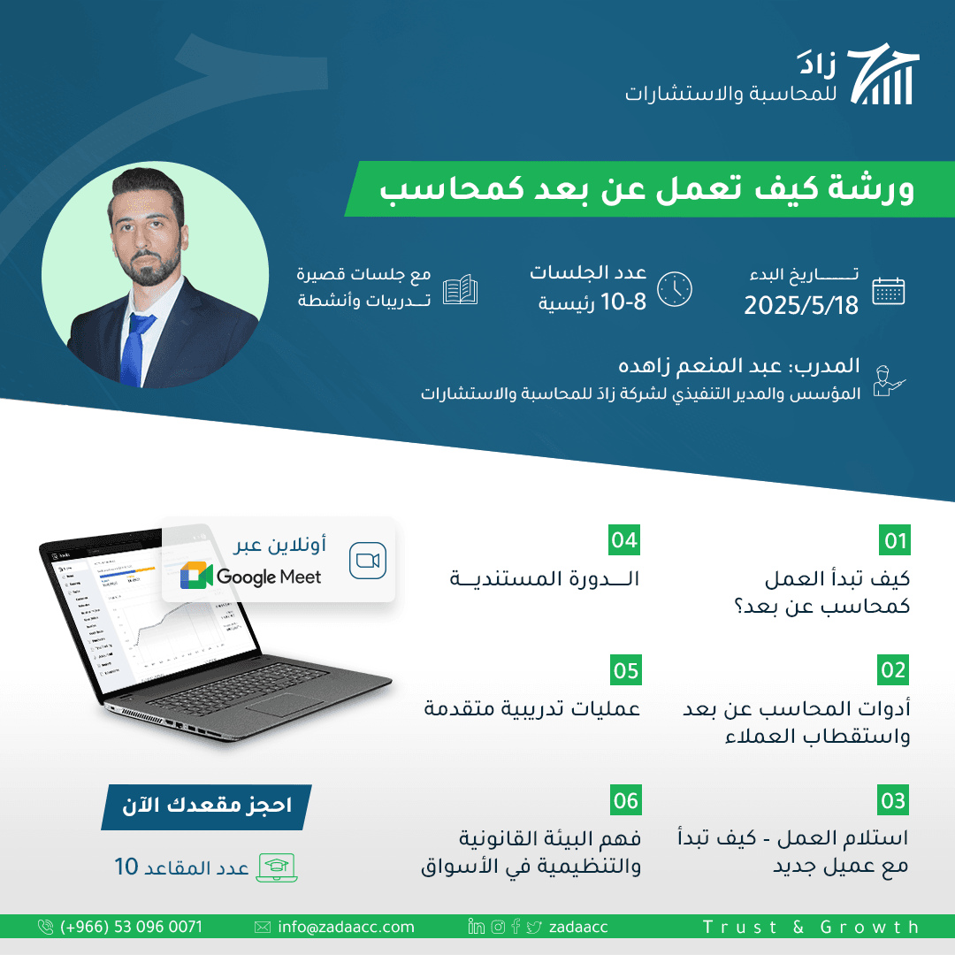 نقوم في زادَ بتقديم كافة خدمات المحاسبة عن بٌعد بدءاً من إعداد الاقرار الضريبي والزكوي انتهاءً بتوظيف محاسب خاص لعملك